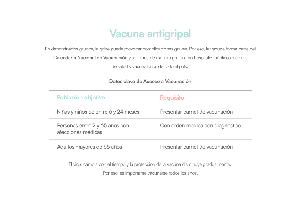 Es importante vacunarse todos los años, ya que el virus cambia con el tiempo y la protección de la vacuna disminuye gradualmente.